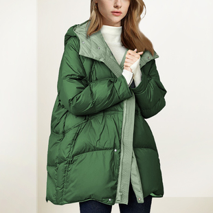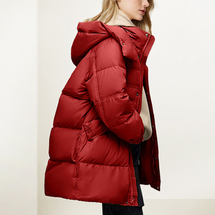 洋气加厚减龄中长款 新款 面包服潮 红色连帽羽绒服女2025年冬装 法式