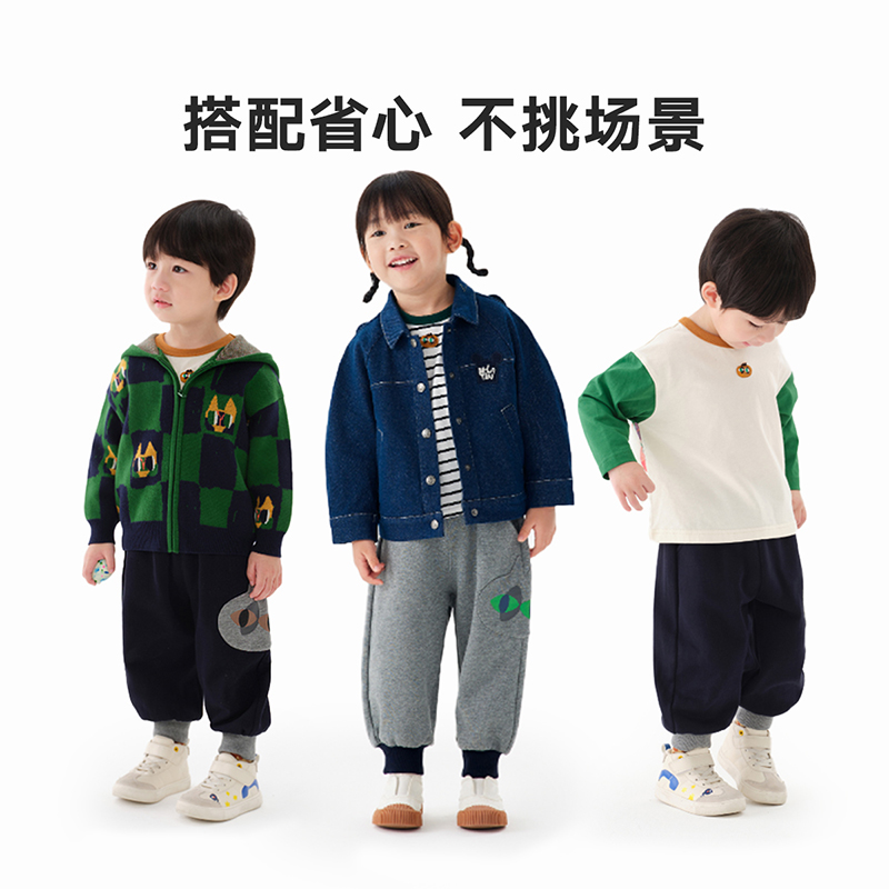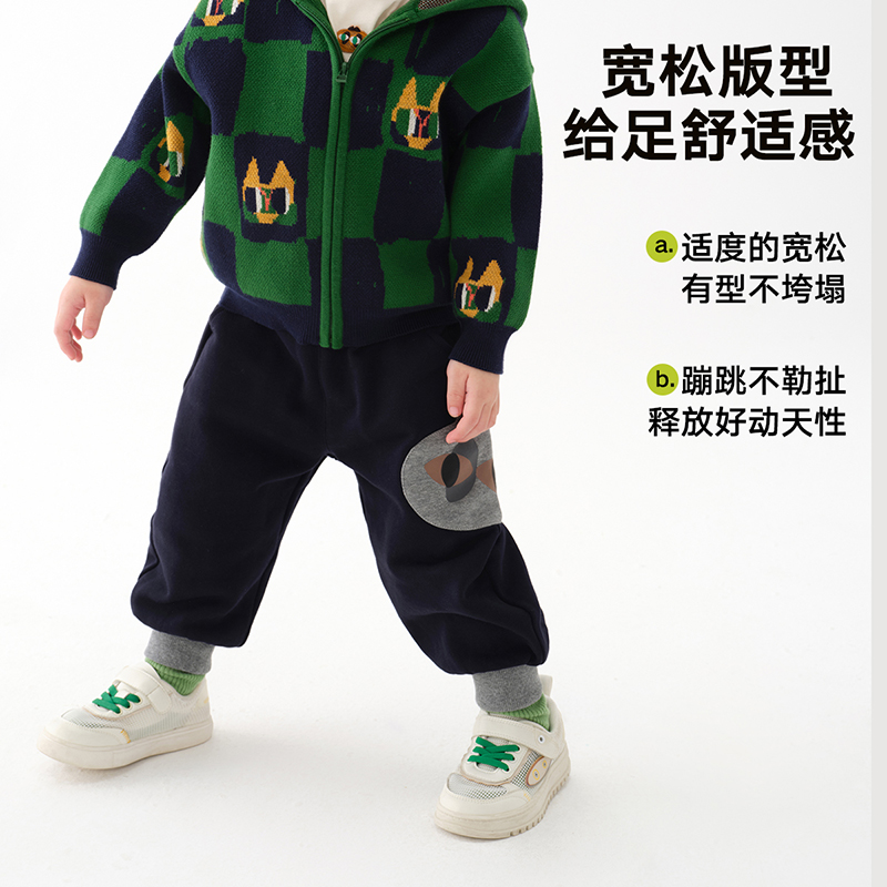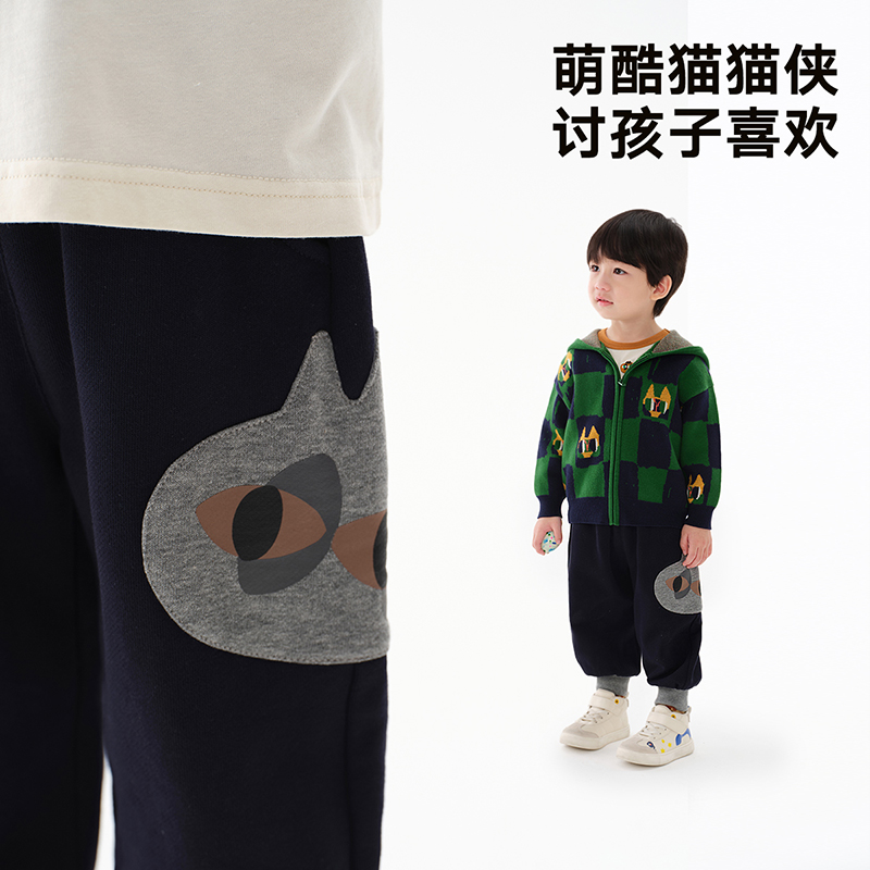 男小童萌趣可爱猫猫贴布针织长裤 马拉丁童装 新款 子2024秋装 儿童裤
