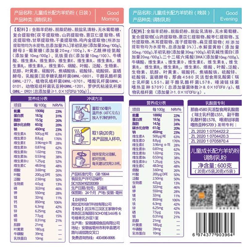 胃赞臣儿童成长高钙配方羊奶粉青少年羊脾肽奶粉官方早晚装 15岁