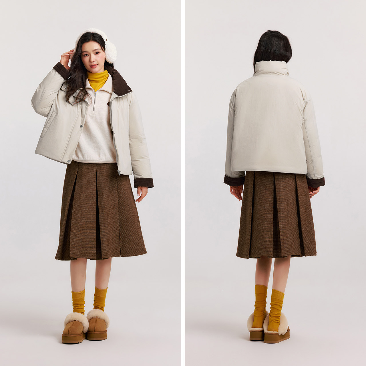 鸭鸭户外露营羽绒服女士2025秋冬反季 小个子立领面包服外套S 短款