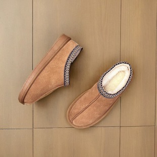 秋冬外穿男女羊毛拖鞋 王一博同款 羊皮毛一体雪地靴一脚蹬懒人棉鞋