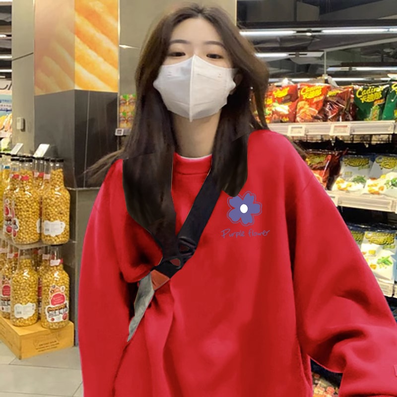 大版 爆款 加厚欧货无帽上衣服 加绒卫衣女2025新款 香芋紫圆领秋冬季