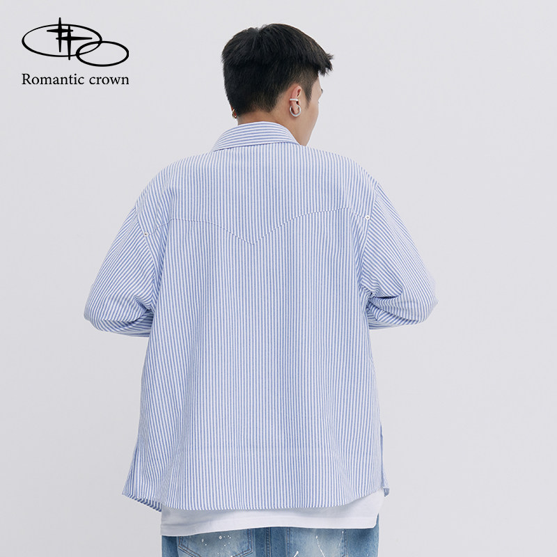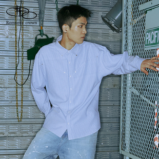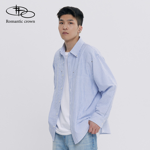 休闲宽松设计感男女同款 RomanticCrown24秋冬新款 通勤条纹衬衫