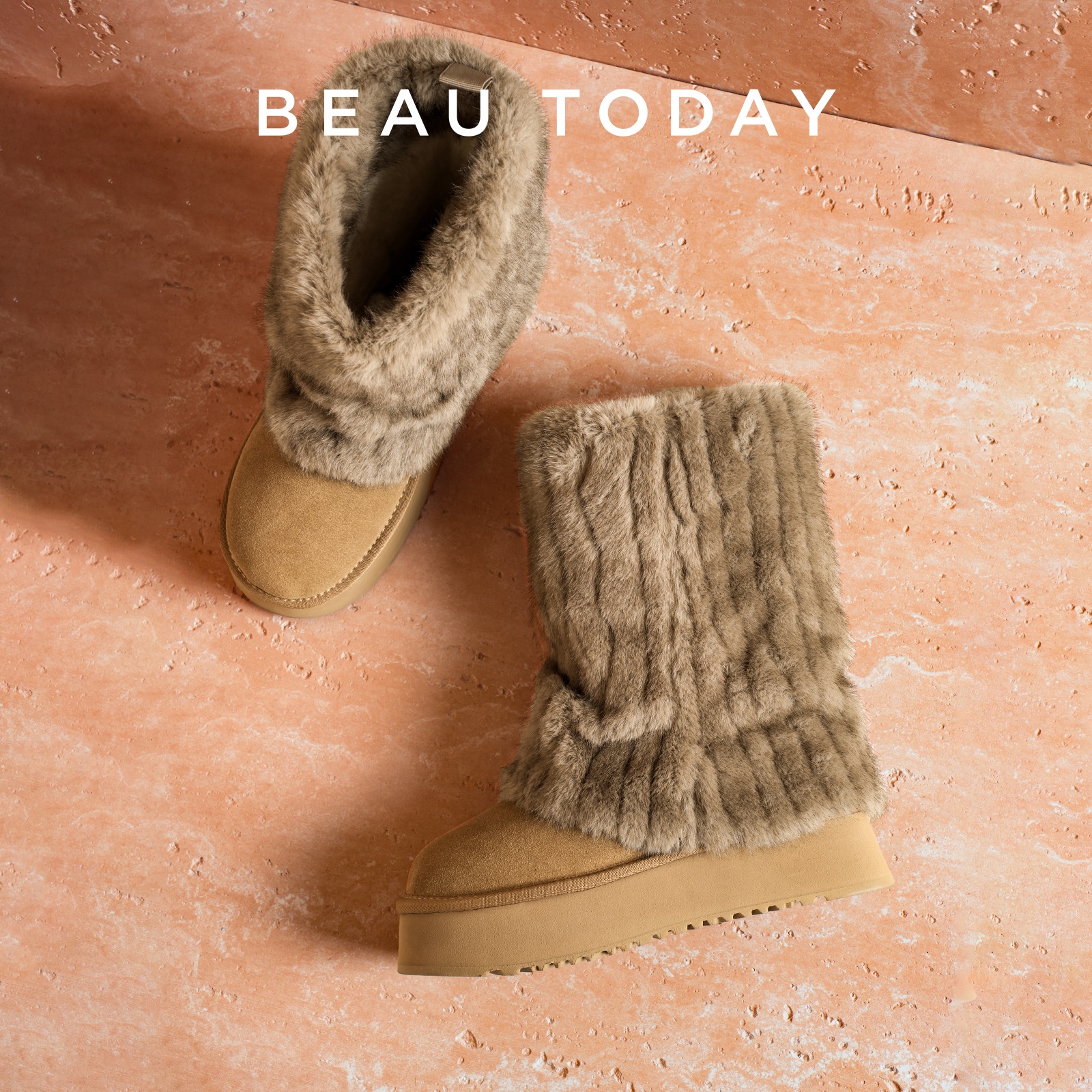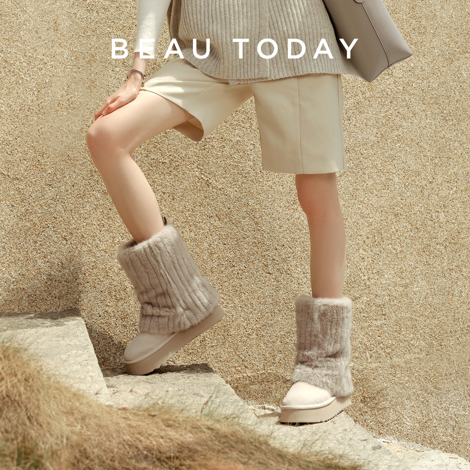 BeauToday厚底雪地靴女冬季 中筒靴保暖加绒泰迪系列短靴子毛毛靴