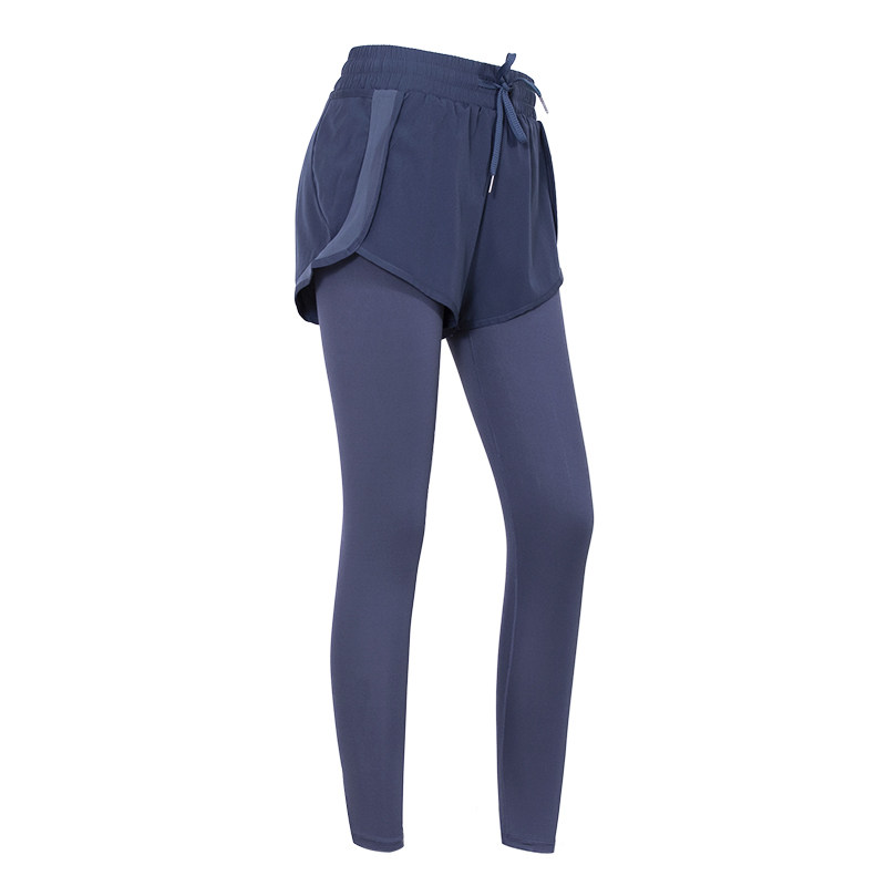 内置口袋瑜伽服秋冬 跑步速干运动裤 瑜伽裤 假两件专业遮胯宽健身裤