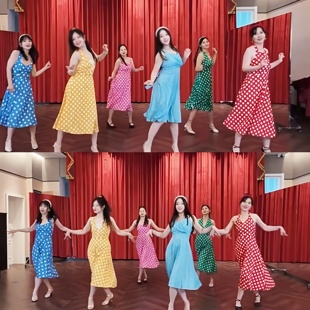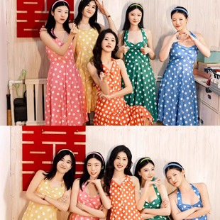 80年代复古港风裙年会裙子女士高级感开场舞服装 波点裙赫本风晨袍
