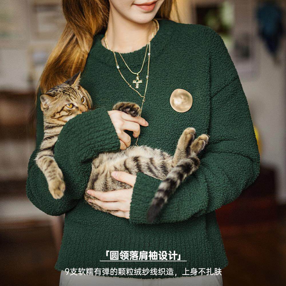 女 内搭打底上衣秋季 马登美式 颗粒绒圈圈毛衣复古套头软糯风针织衫