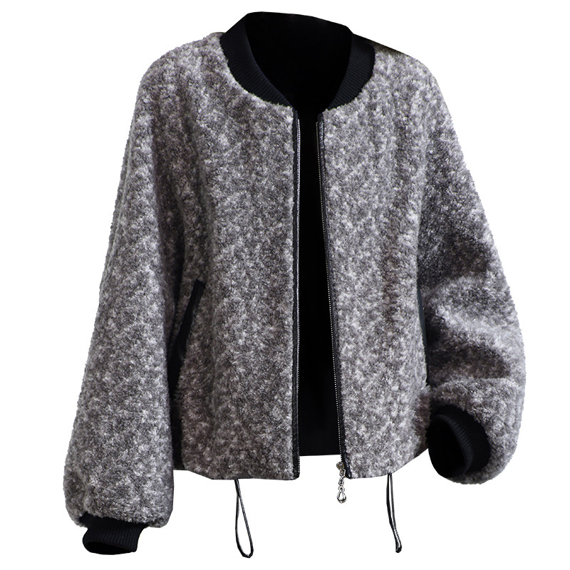 羔羊毛毛颗粒皮草外套 蝙蝠袖 羊剪绒大衣女新款 2026冬新小个子时尚