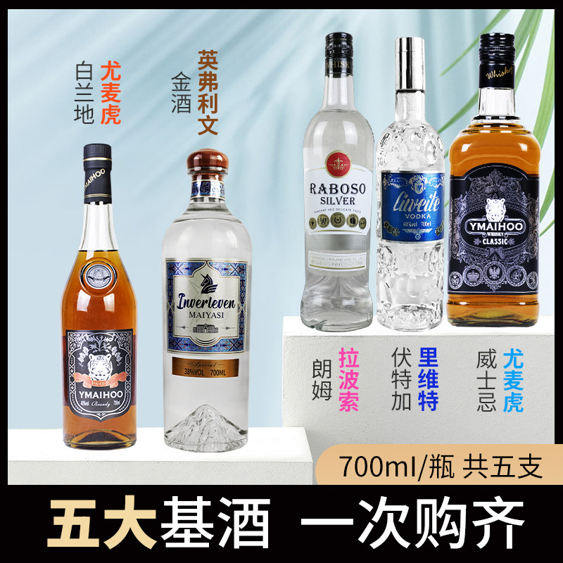金酒白朗姆白兰地威士忌伏特加 酒吧基酒鸡尾酒调酒套装 5支装