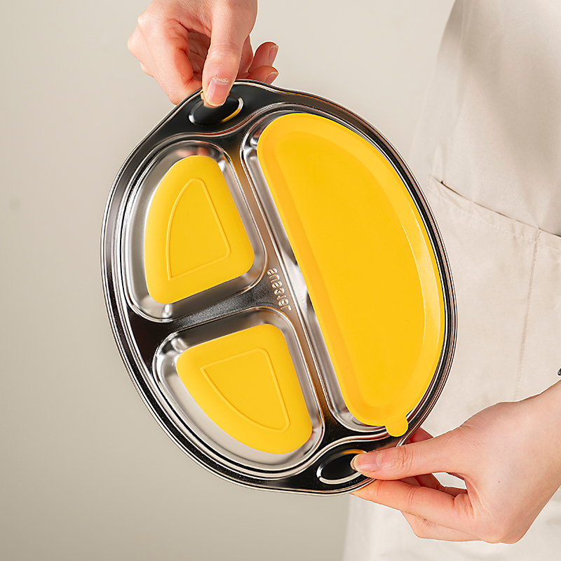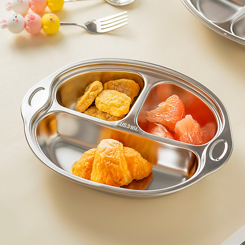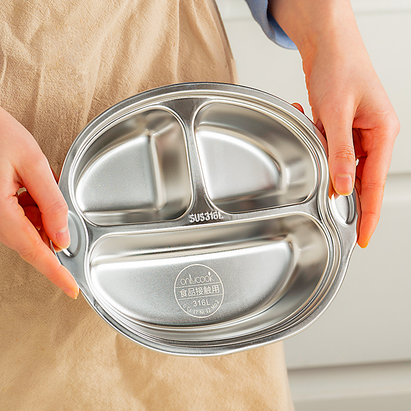 onlycook食品级316L不锈钢儿童分餐盘分格婴儿盘宝宝盘子餐具菜盘