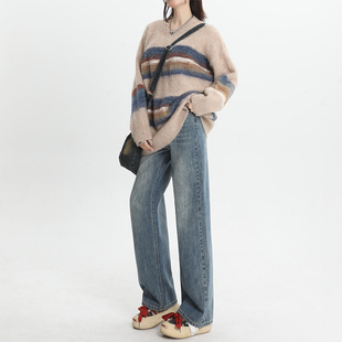 子高腰显瘦小个子直筒裤 宽松窄版 加绒裤 女2025秋冬新款 阔腿牛仔裤