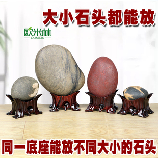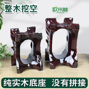 c105c根雕底座奇石凹槽鹅卵石实木托架免挖槽石头泰山石底托