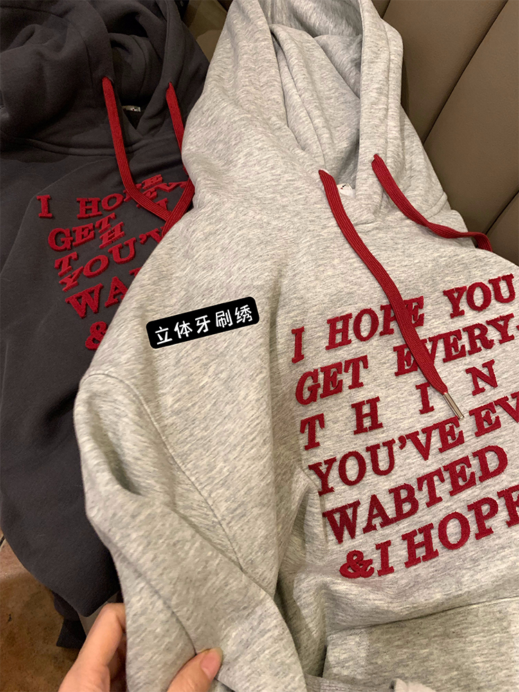 荒荒家字母立体绣花连帽卫衣冬百搭美式 宽松套头上衣 流行保暖长袖