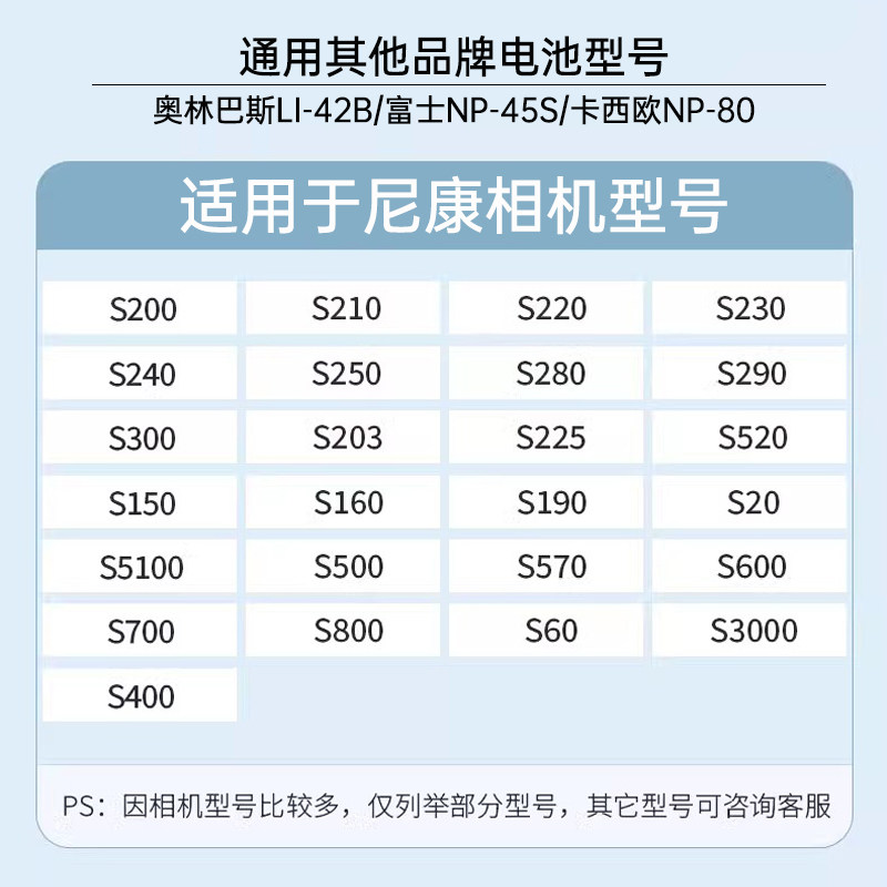 S210 S4000充电器 S3000 S570 相机EN EL10电池S60S80 S600 S230 S220 S800 适用尼康ccd数码 S500 S700 S510