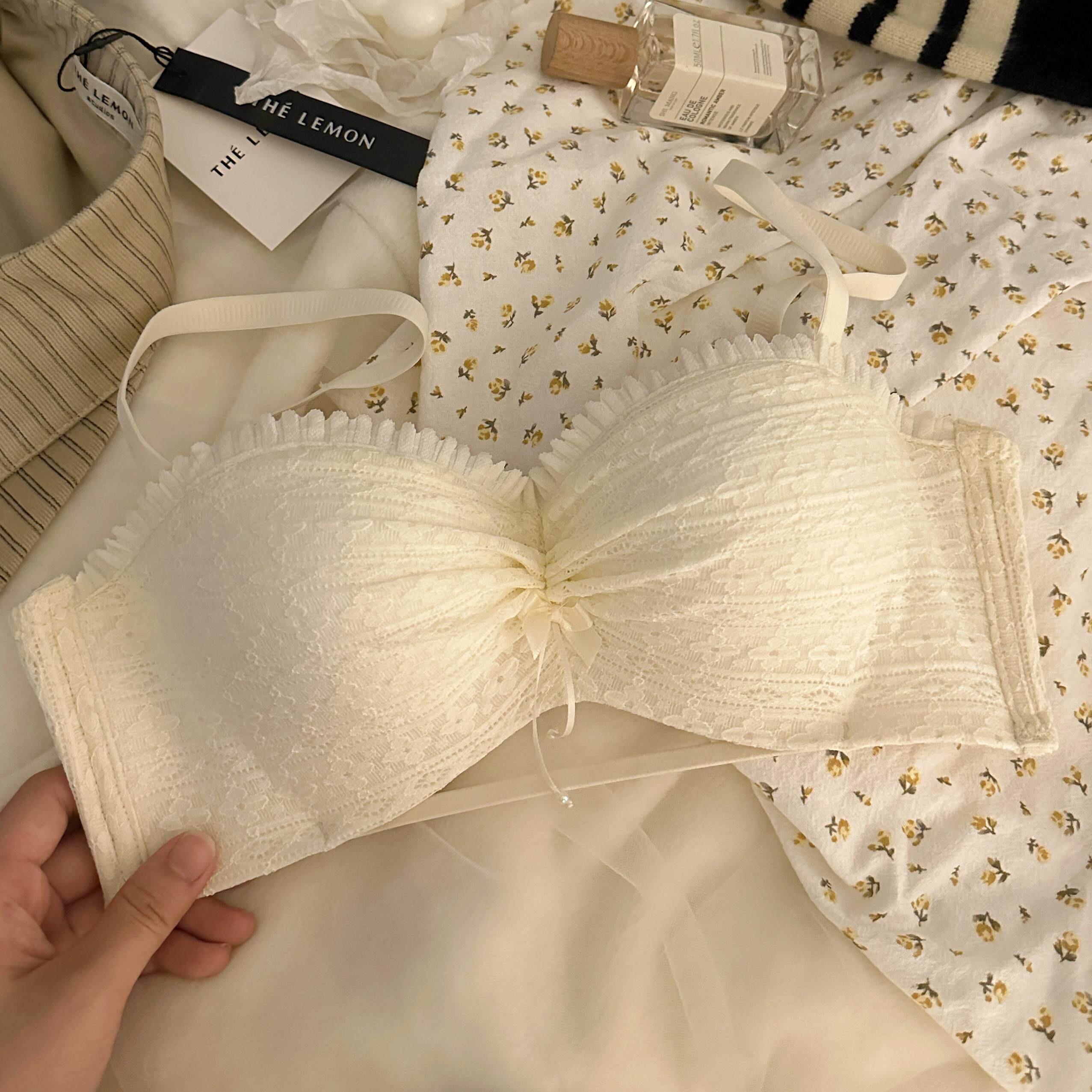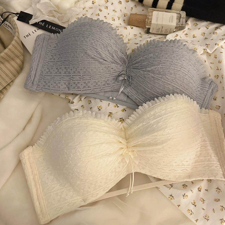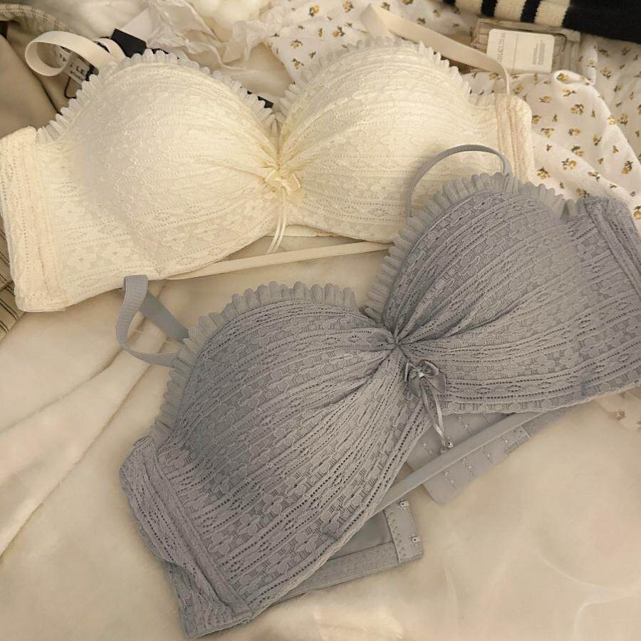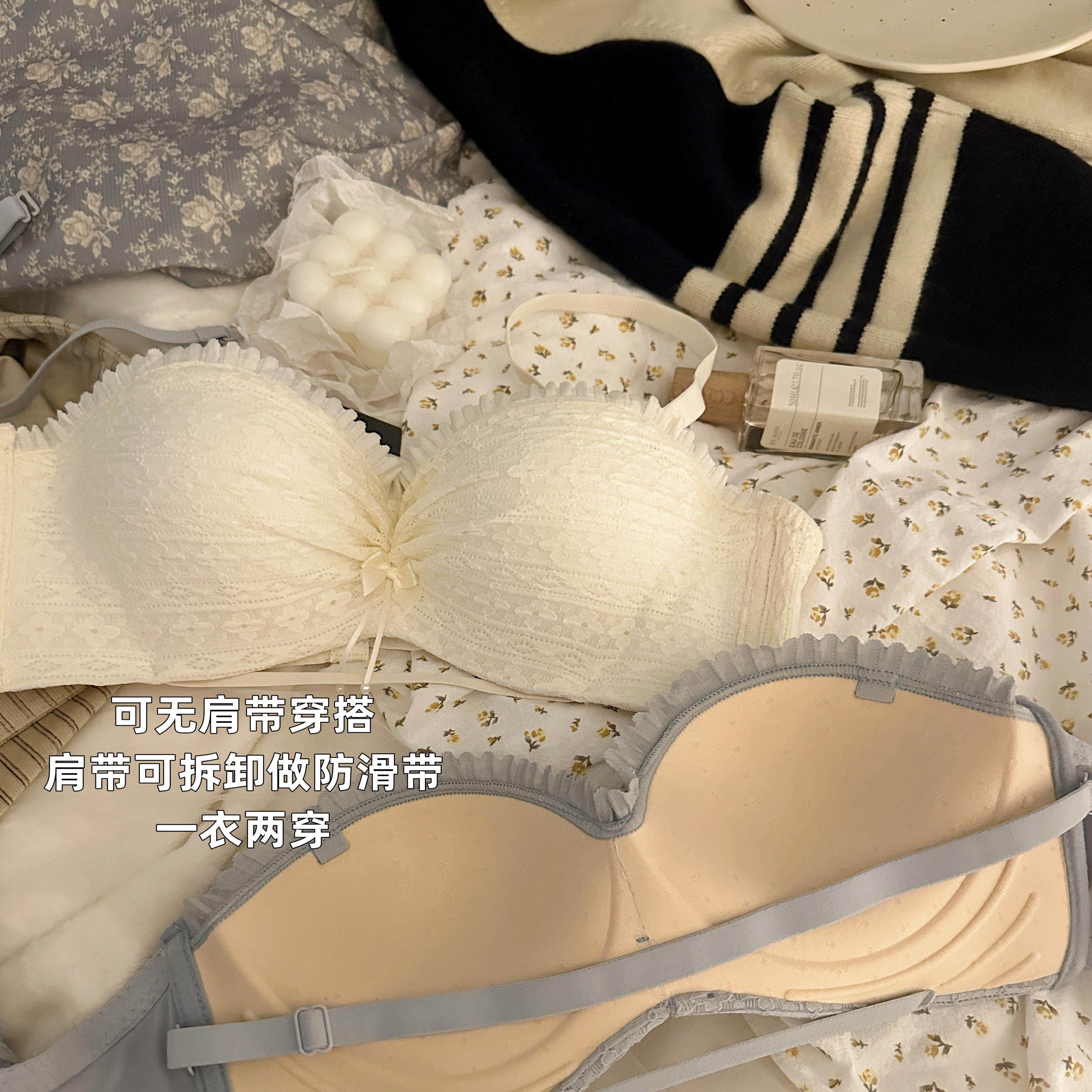 法式 内衣女小平胸聚拢无钢圈无肩带上托防下垂性感收副乳蕾丝文胸