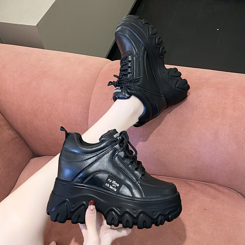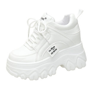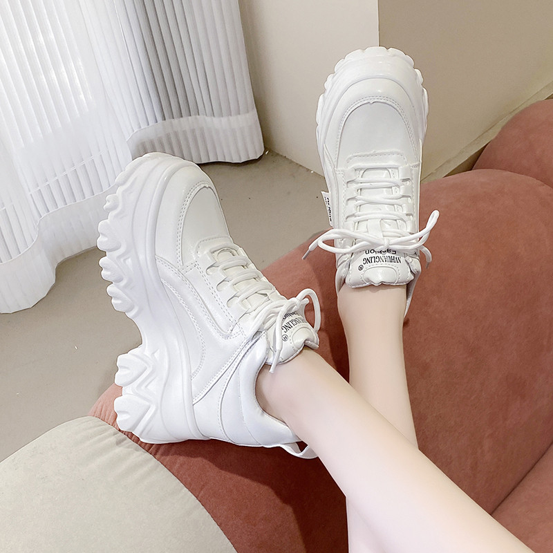 小个子老爹鞋 内增高女鞋 春季 女2025新款 10cm厚底松糕皮面小白鞋