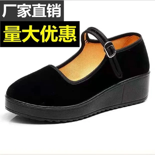 老北京布鞋 女黑色松糕厚底坡跟中跟防滑酒店礼仪舞蹈工作单鞋