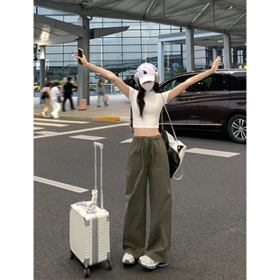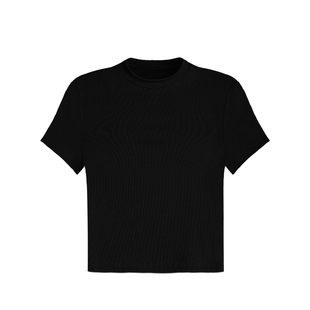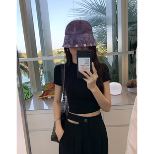 显瘦高腰短款 MULVAN t恤女修身 黑色短袖 露脐辣妹正肩上衣 人手2件