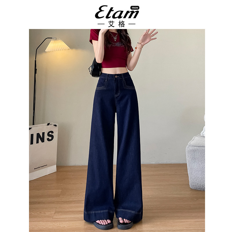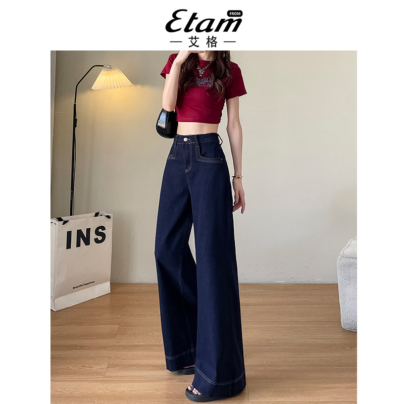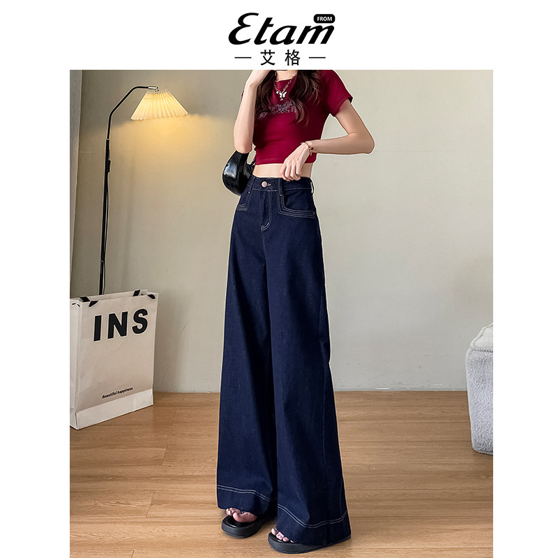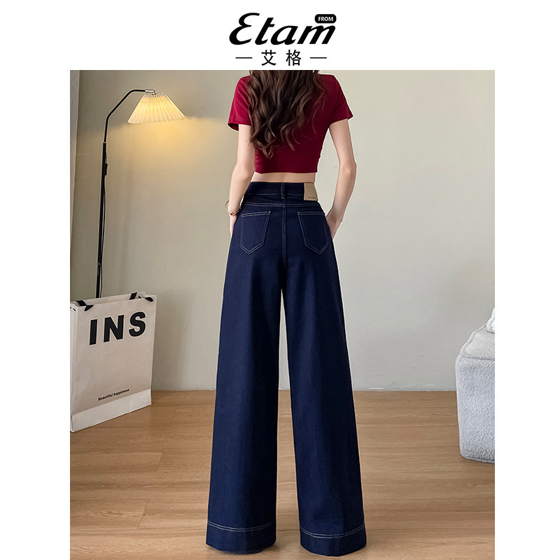 显瘦宽松垂感拖地裤 新款 子 女2026年春季 艾格丹宁色高腰阔腿牛仔裤