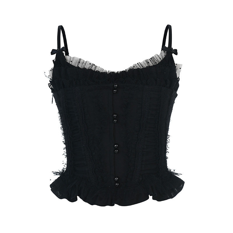 lefame拉飞姆洛可可风蕾丝针织波嬉吊带背心 曲唱同款 周也