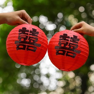 结婚灯笼婚庆喜字大红灯笼植绒灯笼新年阳台户外大门灯笼中式 宫灯