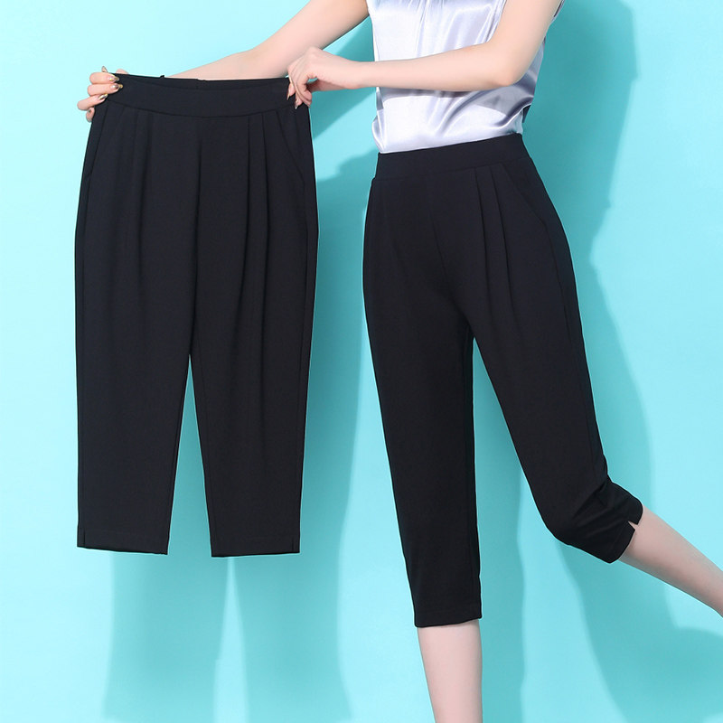 薄款 女夏季 冰丝哈伦裤 高腰显瘦中年妈妈裤 大码 子女休闲中裤 七分裤