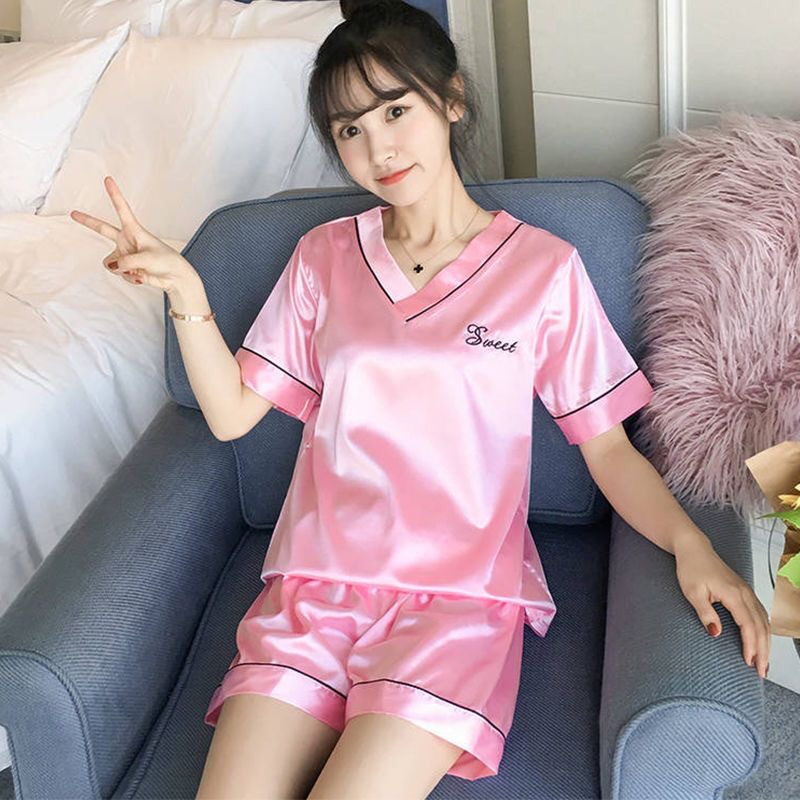 女夏时尚 2025新款 套装 领家居睡衣冰丝V领印花韩版 睡衣 女士薄款