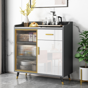 岩板餐边柜现代简约客厅小户型储物收纳玻璃门实木餐厅玄关茶水柜