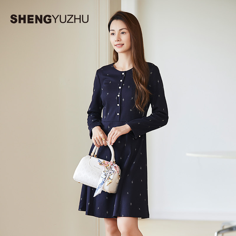 加厚中长款 连衣裙商场同款 A字裙女休闲 新款 声雨竹官方旗舰店秋季