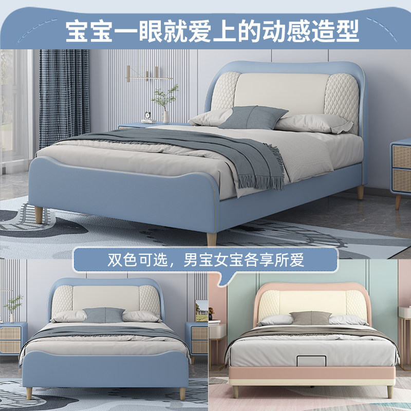 雅兰儿童床防污科技皮软靠亲肤男孩女孩1.5m童趣卧室软床 启航家