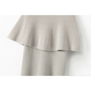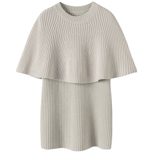 圆领100%纯山羊绒衫 灰色宽松打底上衣 女毛衣秋冬假两件拼色针织衫