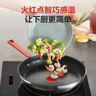 苏泊尔不锈钢平底锅家用火红点聚油不粘锅牛排煎锅炒锅电磁炉通用