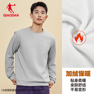 秋季 保暖圆领套头衫 新款 休闲内搭长袖 运动服男装 特步加绒卫衣男士