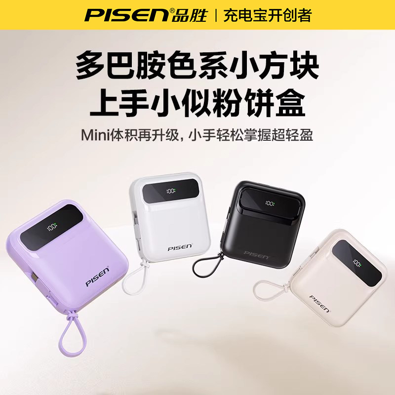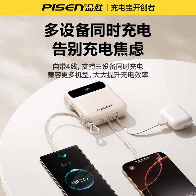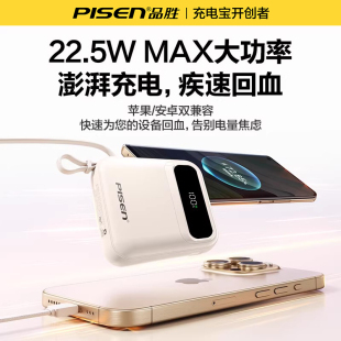 超薄迷你自带四线快充大容量10000mAh移动电源适用华为小米苹果专用17 品胜2026新款 充电宝3C认证可上飞机