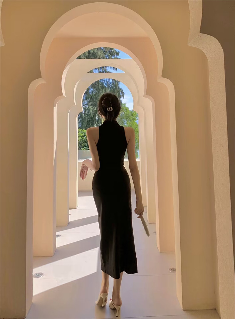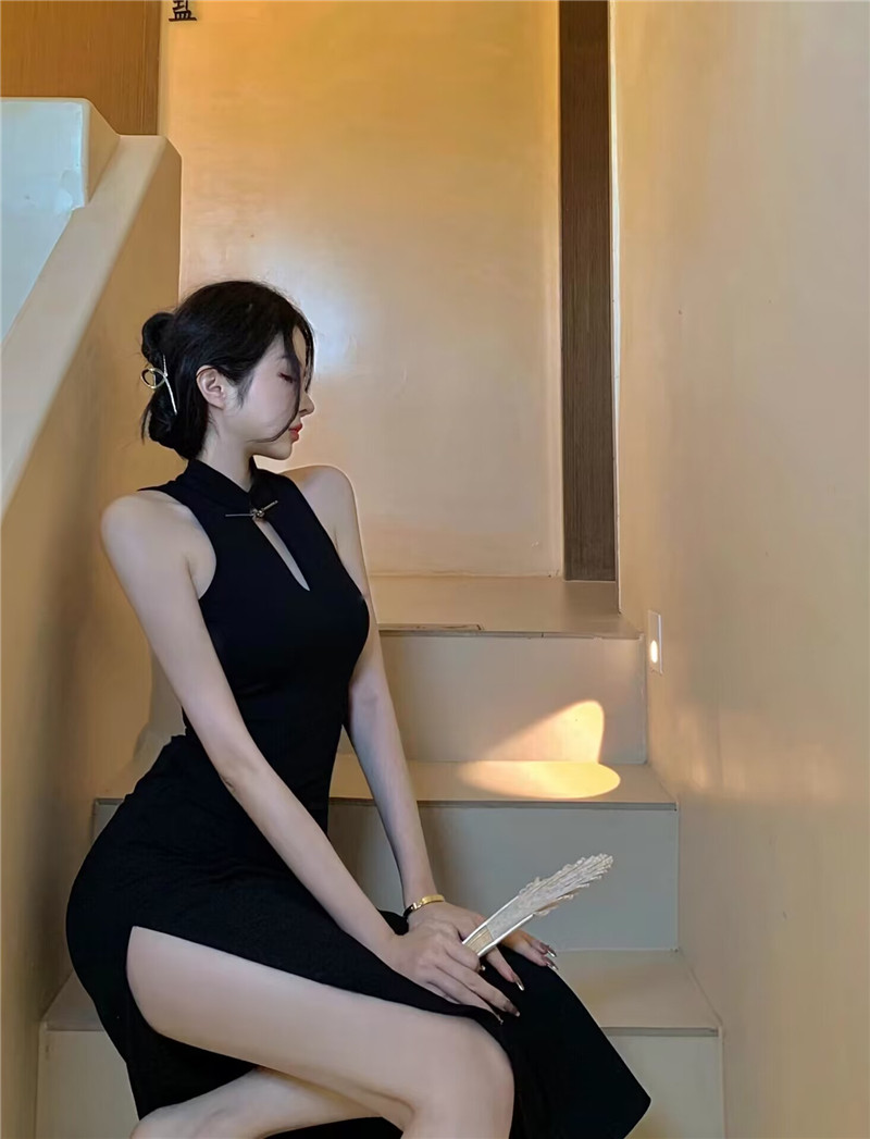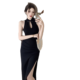 御姐开叉包臀长裙 新款 新中式 挂脖改良旗袍晚礼服连衣裙女2024夏季