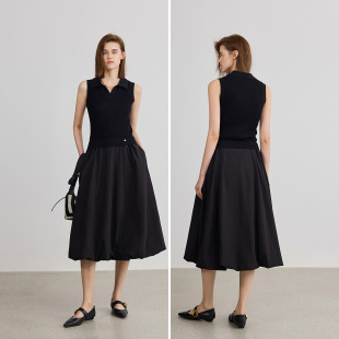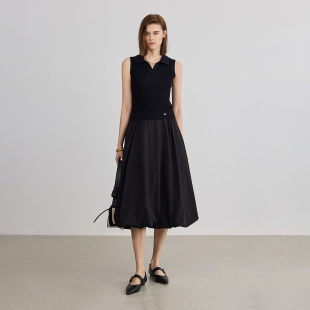 POLO领小黑裙无袖 女装 LILY2025新款 气球裙连衣裙 商场同款