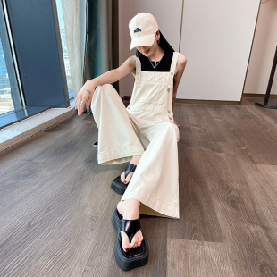宽松显瘦连体阔腿裤 减龄牛仔背带裤 奶系韩版 2026年新款 女春夏秋季