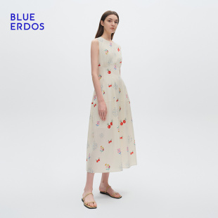 设计感气质樱桃印花无袖 ERDOS春季 BLUE 背心连衣裙女 胡可推荐