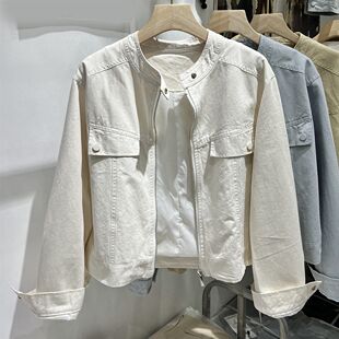纯色港式 韩版 新款 外套女2025春季 小个子上衣 水洗复古做旧牛仔短款