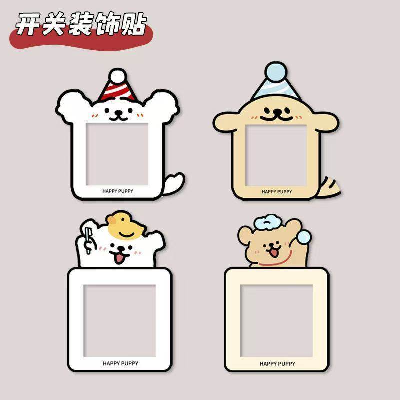 创意小狗开关边框套墙贴插座面板遮丑可爱墙面灯开关装 饰贴卡通