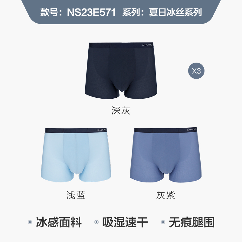 平角内裤 3条装 男大空间冰丝凉感透气舒适轻薄款 内裤 爱慕先生正品