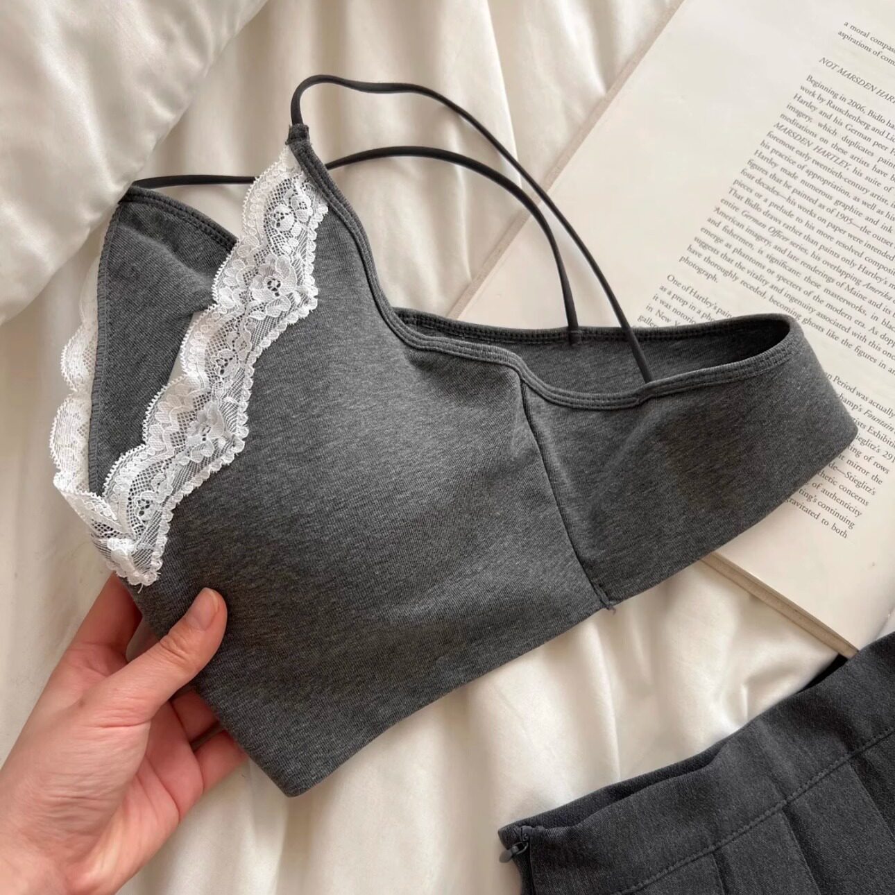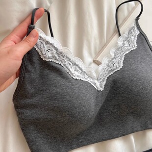 法式 文胸可外穿 性感蕾丝内衣女无钢圈深v自带胸垫美背吊带一体式