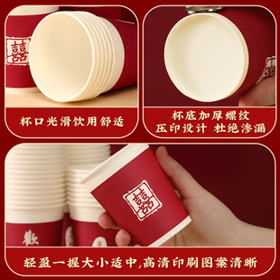 结婚纸杯一次性喜杯子食品级加厚酒红色高级感喜杯纸碗套装 水杯