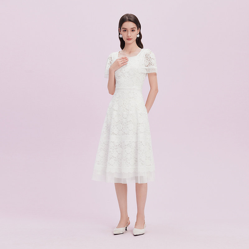 新款 Koradior拉珂蒂减龄2025商场同款 蕾丝连衣裙 精致社交