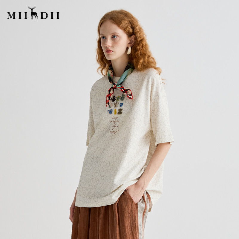 休闲日常肌理感宽松H型上衣252MT0572 新品 谜底T恤短袖 女2025夏季