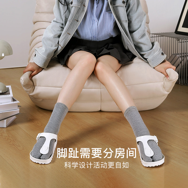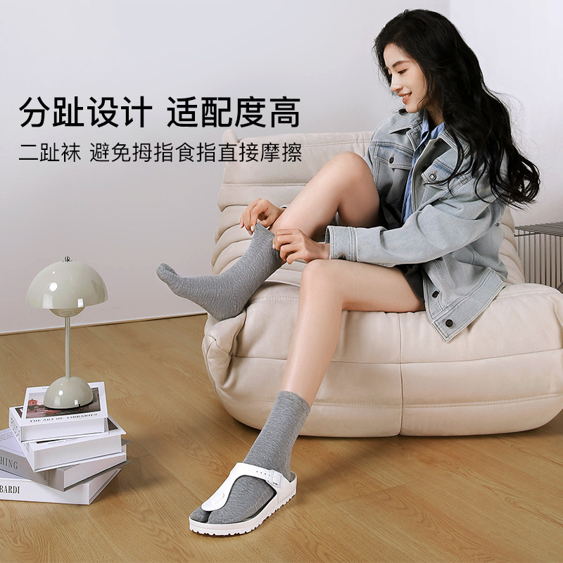 Tabio二趾袜女柔软透气ins潮黑白分趾袜纯色中筒袜百搭袜子女