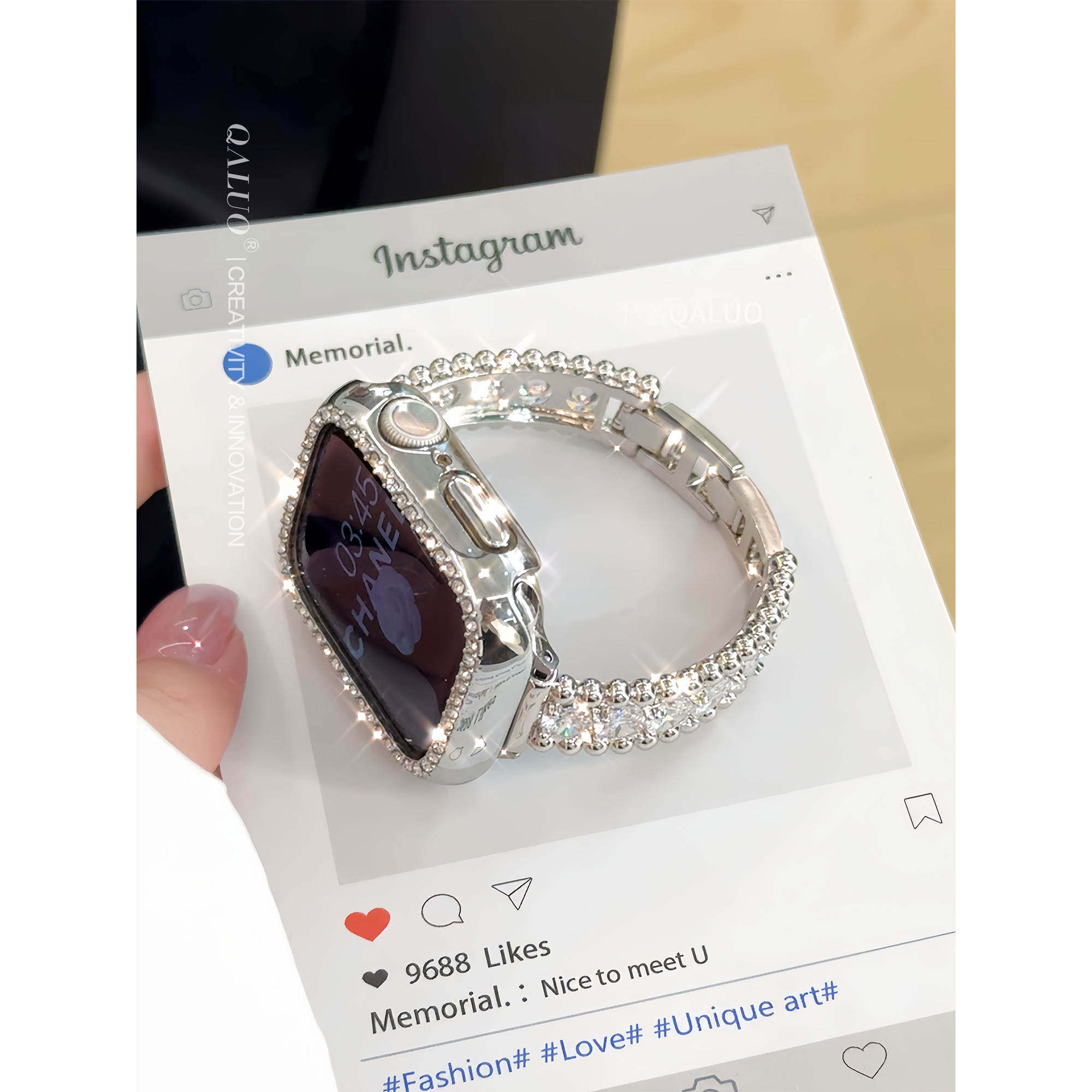 42mm女生金属高级感 watchS11 3代41 S10表带iwatch9苹果手表se 〔满钻花环〕适用apple QALUO新款