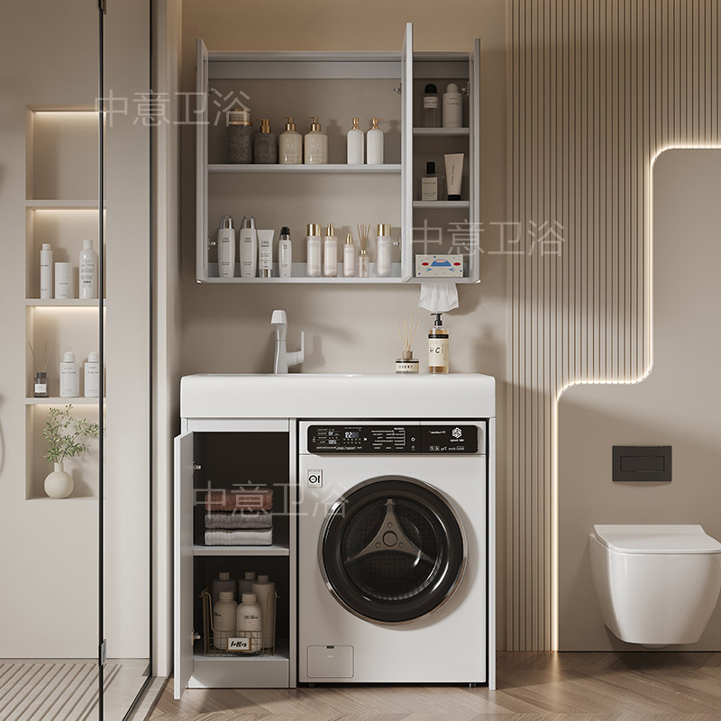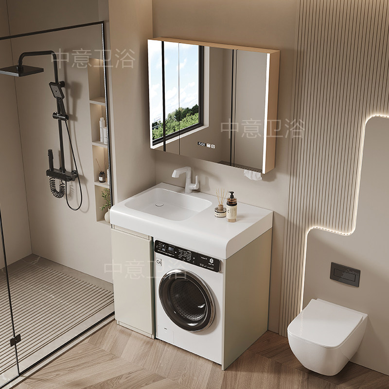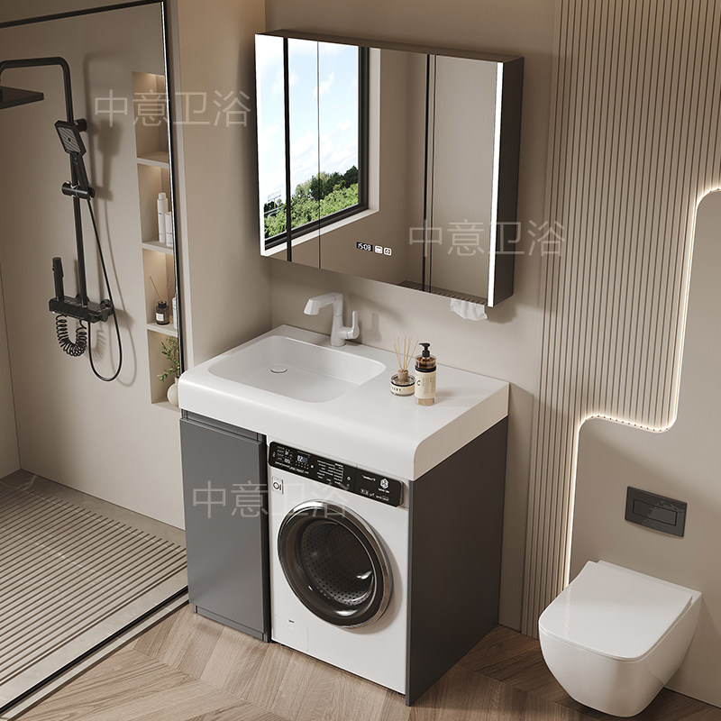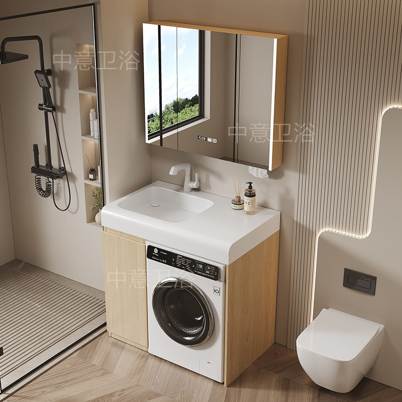 美浴柜浴室柜洗衣机伴侣岩板无缝陶瓷一体盆卫生间支持来图定制
