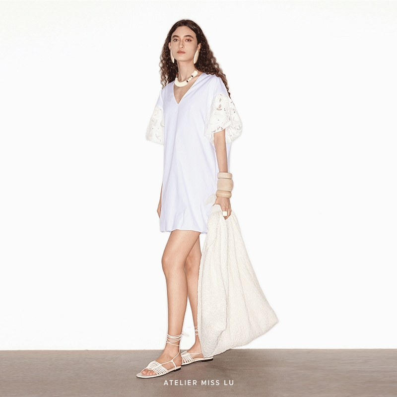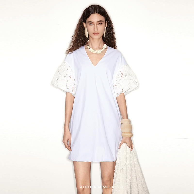 连衣裙 2024春夏蕾丝拼接廓形短袖 AtelierMissLu 光影疏离