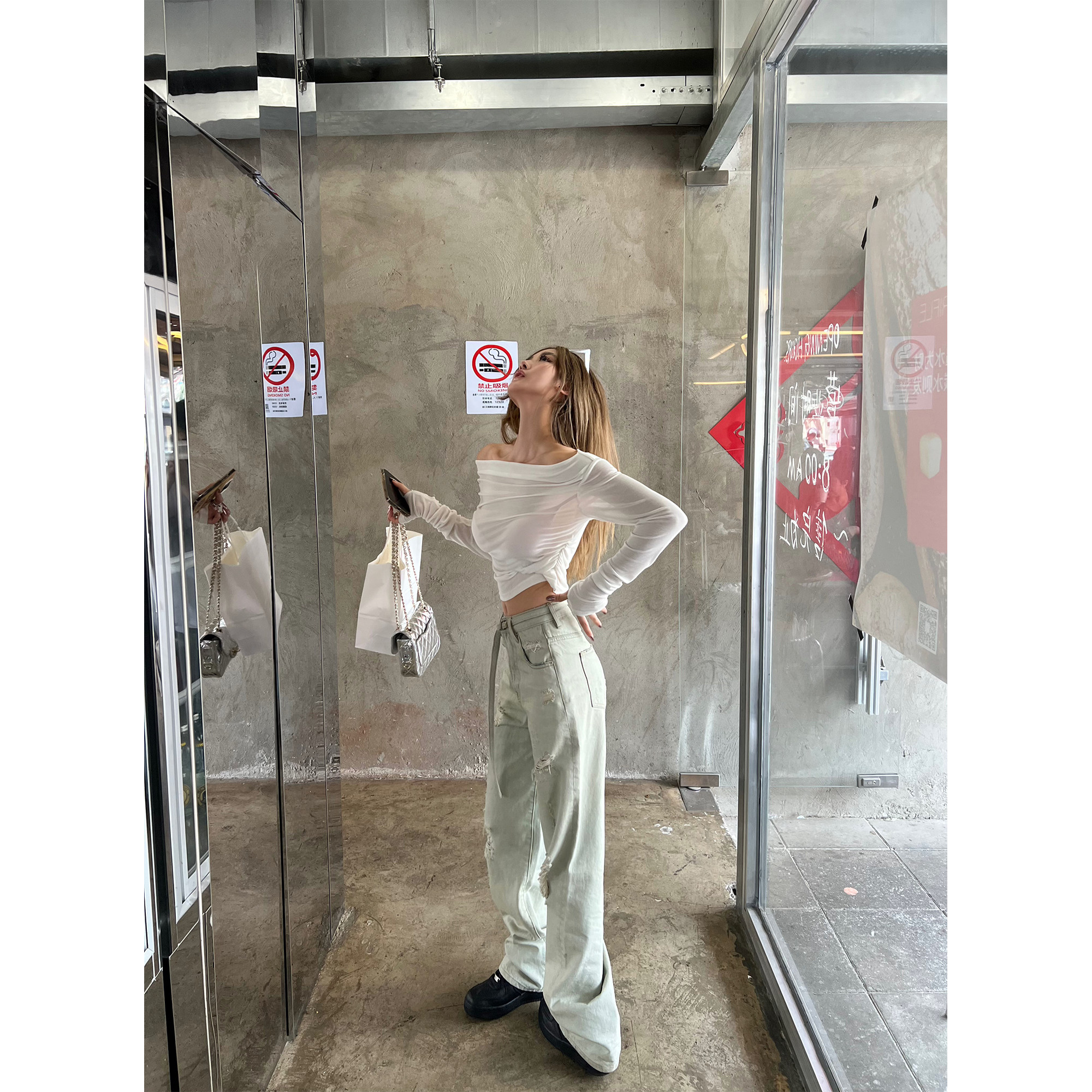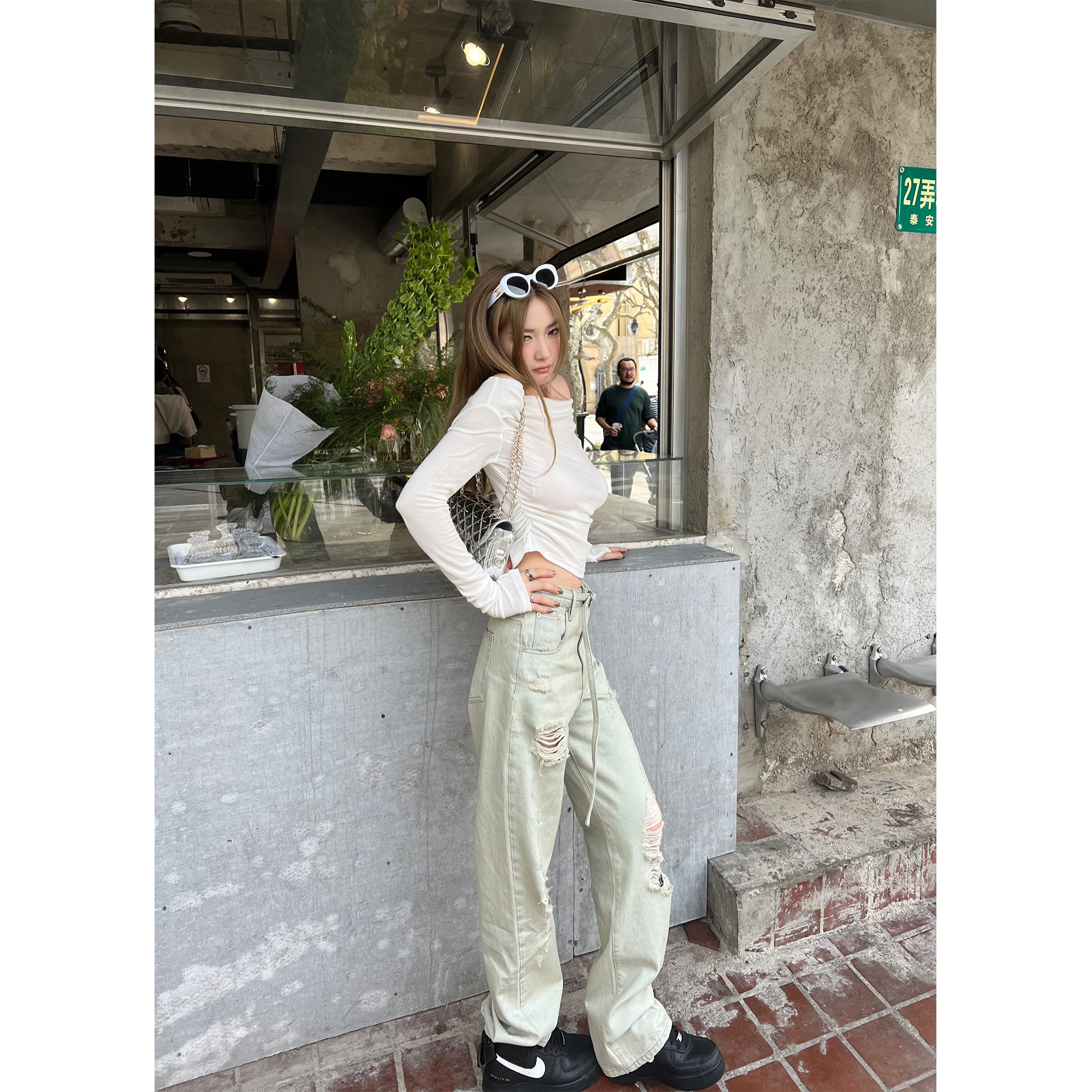 休闲长裤 Xinlei 水泥灰做旧破洞直筒牛仔裤 时髦精 女春夏 Lin